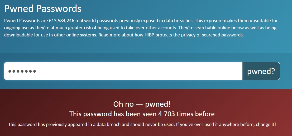If the message "Oh no - pwned!" appears, your email address is compromised: