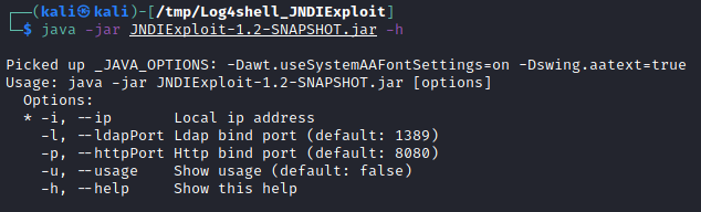 java -jar JNDIExploit-1.2-SNAPSHOT.jar -h