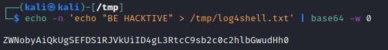 echo -n 'echo "PWNED par BE HACKTIVE" > /tmp/log4shell.txt' | base64 -w 0