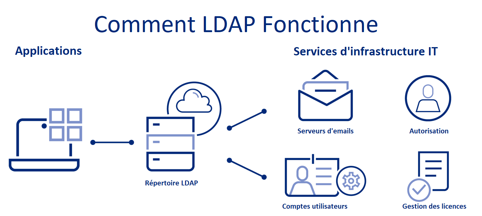 Lightweight Directory Access Protocol (LDAP) is a protocol that allows applications to quickly query user information.