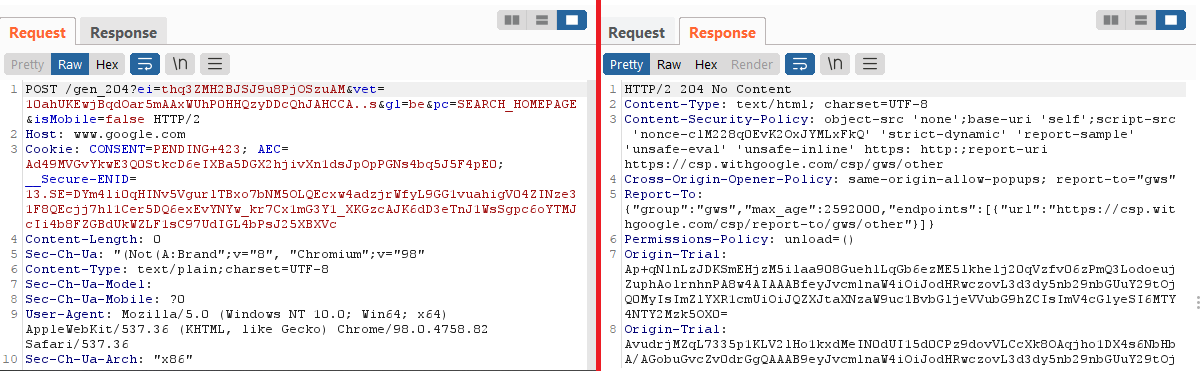 Click any history entry to view the raw HTTP request, along with the corresponding server response.