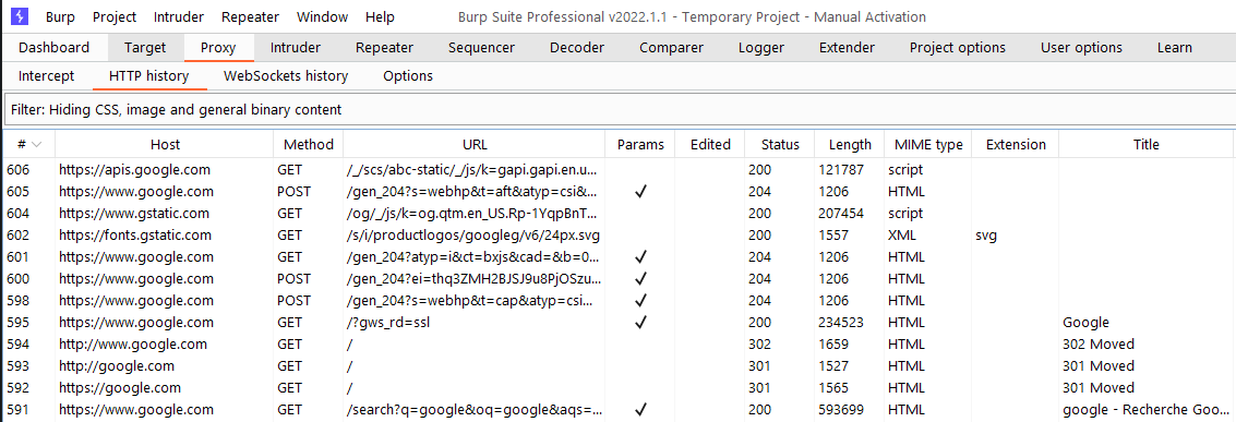 ## View HTTP history