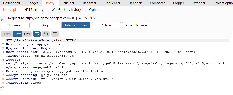 In the previous tutorial, you learned how to intercept a request. We will do the same with level 1 on our target.