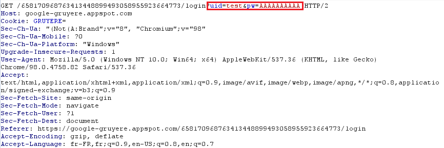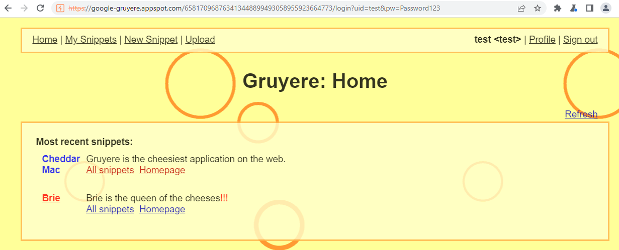 For this part, we will use the Google Gruyere application which allows us to connect to an account.