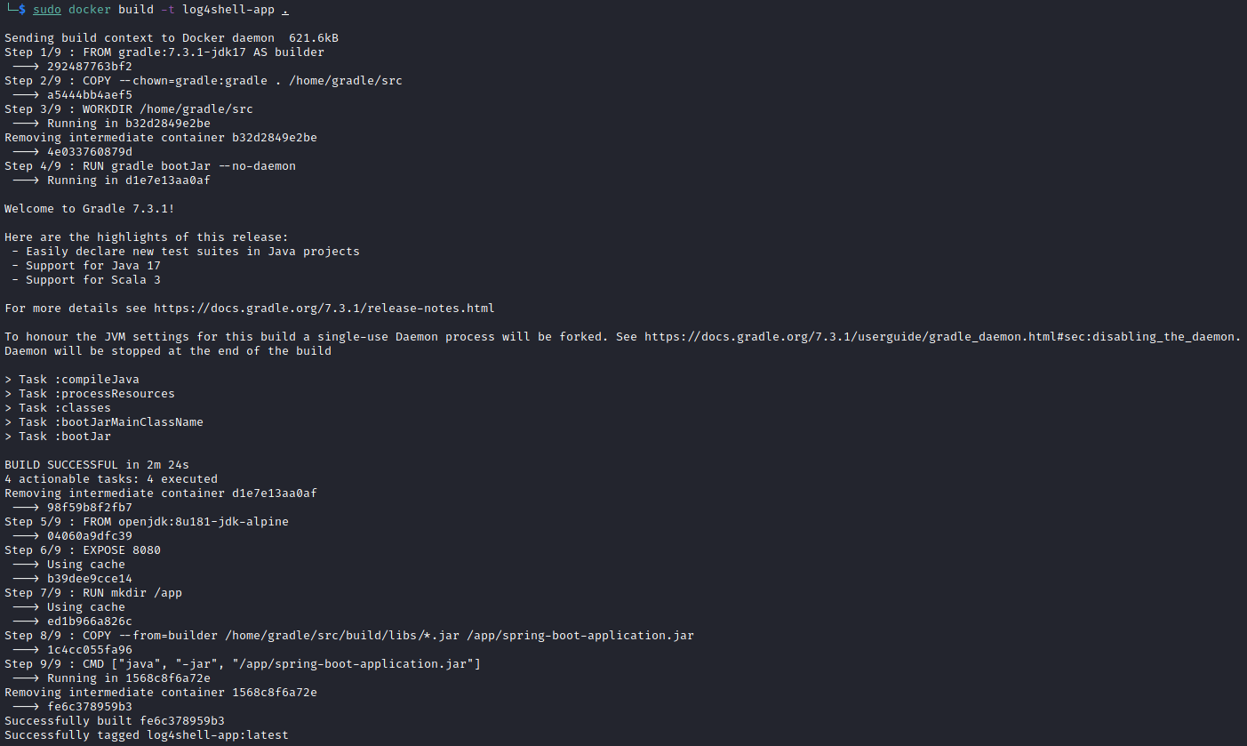 sudo docker build -t log4shell-app .
