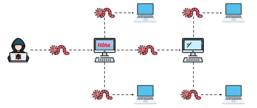 Les réseaux : Les vers peuvent s'auto-répliquer sur les réseaux via un accès partagé.
