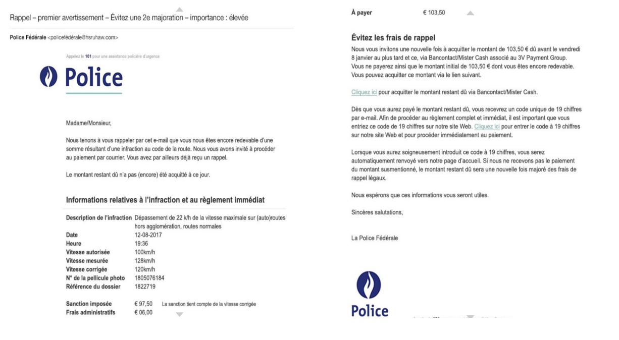 Dans ce type d'attaque par hameçonnage vocal, les escrocs prétendent appartenir à une agence gouvernementale comme le Service public fédéral Finances (SPF Finances) ou la police. Ils jouent avec votre peur et votre sentiment d'urgence, en vous disant que vous leur devez de l'argent et que vous devez les rembourser immédiatement. Sinon, vous serez condamné à une amende ou pire.