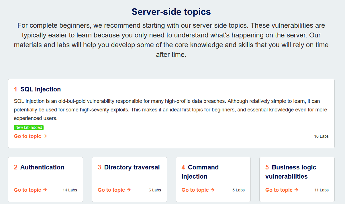 L'académie PortSwigger propose la théorie et les labs pour apprendre à utiliser burp mais aussi les vulnérabiltiés liées aux applications web.\ <br>